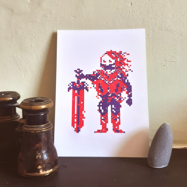 Prints inspired by retro game graphics, sci-fi books and RPGs. Choose your adventurer!